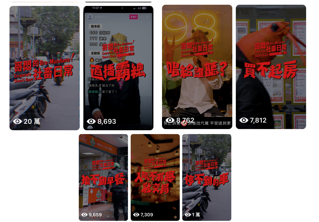 製作「哥悶社畜日常」系列短影音,以Kuso幽默風格引發上班族共鳴,提升品牌好感度,並帶動「週三哥吉拉日」優惠銷售