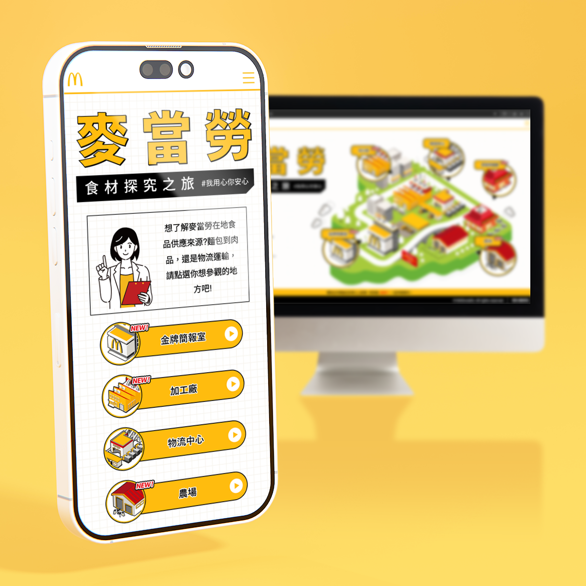 為了確保讓你吃得美味又心安,麥當勞從公開產地來源、履歷認證、新鮮食材現點現做,有我們將複雜內容轉化成一目了然的圖文設計,透過流暢的網頁架構與視覺引導,讓消費者輕鬆理解每一個衛生與安心的細節,資訊公開、脈絡清楚,看得懂,也看得見。
