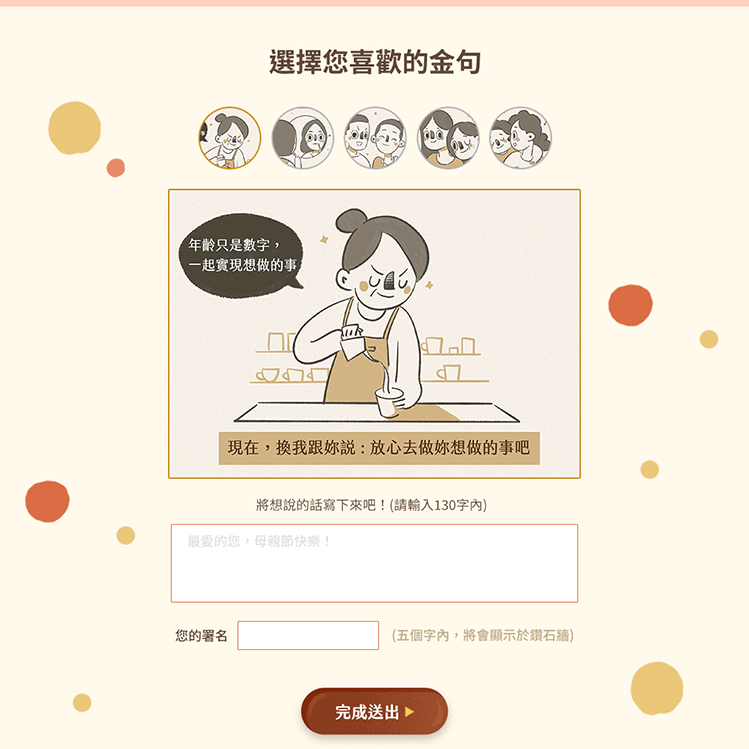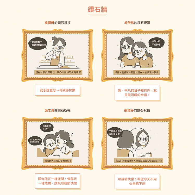 設計可隨機展出參與作品的「鑽石牆」頁面,整合署名與插畫金句,讓每一則告白都像閃亮的鑽石,獨一無二。
