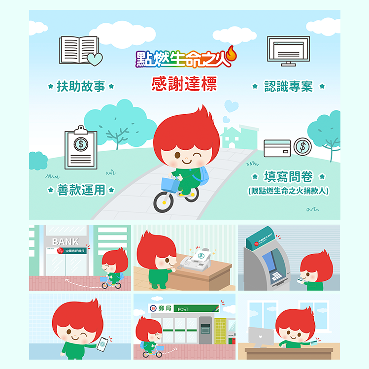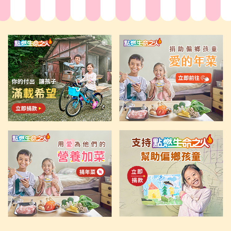 依據真實人物故事設計banner 並引導善心捐款,幫助孩童